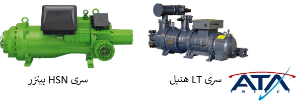 استفاده از کمپرسورهای اسکرو نیمههرمتیک یا تمامهرمتیک صنعتی از برندهای معتبر جهانی (Bitzer، RefComp، Hanbell و …) با ویژگیهای زیر: