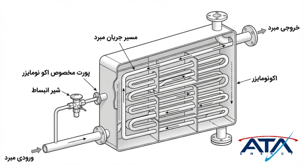 یکی از ویژگیهای خاص چیلرهای اسکرو، امکان استفاده از اکونومایزر است. اکونومایزر نوعی مبدل حرارتی بین کندانسور و شیر انبساط است که با افزایش میزان سابکول (تا حدود ۱۰ تا ۱۵ درجه سانتیگراد)، راندمان و ظرفیت سرمایشی سیستم را بالا میبرد.