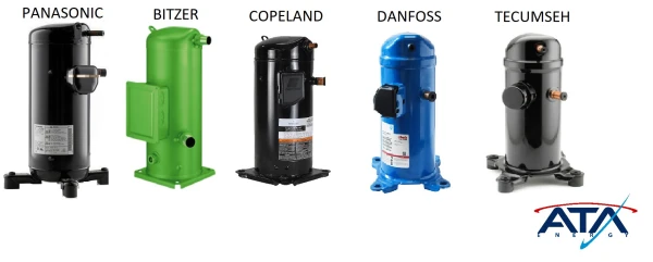 • Copeland (آمریکا): دوام بالا، عملکرد کم‌صدا، مناسب سیستم‌های تجاری و صنعتی متوسط تا بزرگ