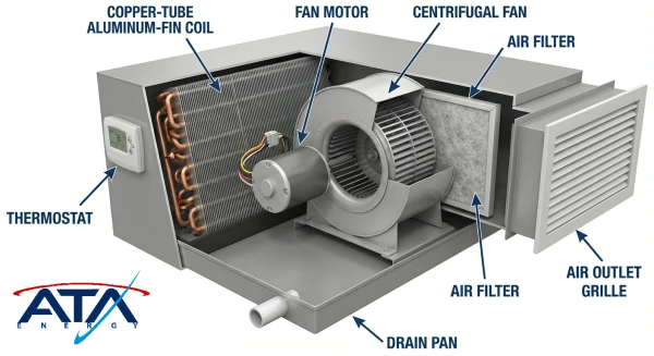 هر فن کویل کانالی از اجزای کلیدی تشکیل شده که کیفیت آنها مستقیماً بر عملکرد دستگاه تاثیر میگذارد؛ این اجزا عبارتند از: