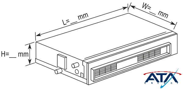 ابعاد فن کویل کانالی مستقیماً به ظرفیت هوادهی و مدل دستگاه بستگی دارد. هرچه ظرفیت هوادهی بیشتر باشد، ابعاد دستگاه بزرگتر و وزن آن سنگینتر خواهد بود تا بتواند حجم هوای بیشتری را جابجا کند.