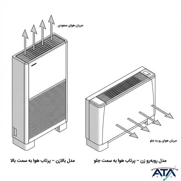 لازم به ذکر است هریک از این مدلها بر اساس طراحی دریچه خروجی، جریان هوای مطبوع را به شیوهای خاص در محیط پخش میکنند و انتخاب آنها به عواملی مانند اندازه فضا، ارتفاع سقف و غیره بستگی دارد.