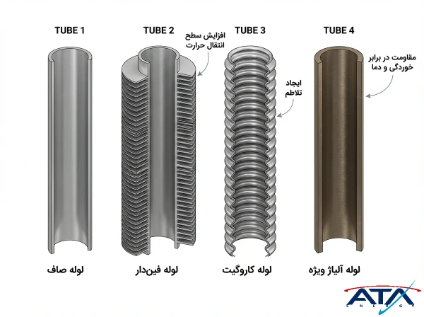 انتخاب نوع لوله تأثیر مستقیم بر سرعت، تلاطم، رسوبگیری و راندمان انتقال حرارت دارد. در همین راستا شناخت انواع لوله زیر و کاربرد هر یک خالی از لطف نیست:
