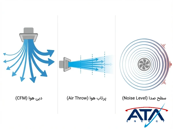 صدای فن این دستگاه میتواند در فضاهای کوچک یا اداری محسوس باشد که باید با انتخاب فنهای کمصدای دور متغیر (EC) مدیریت شود.